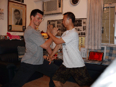Lam Chun Fai und Christian während einer Übungssequenz in der Wohnung des Großmeisters (Hongkong, Juli 2004)